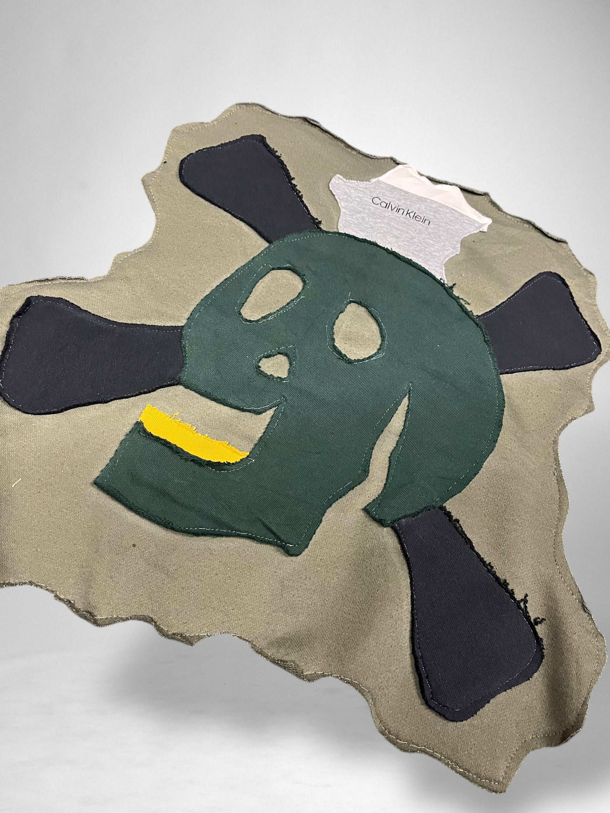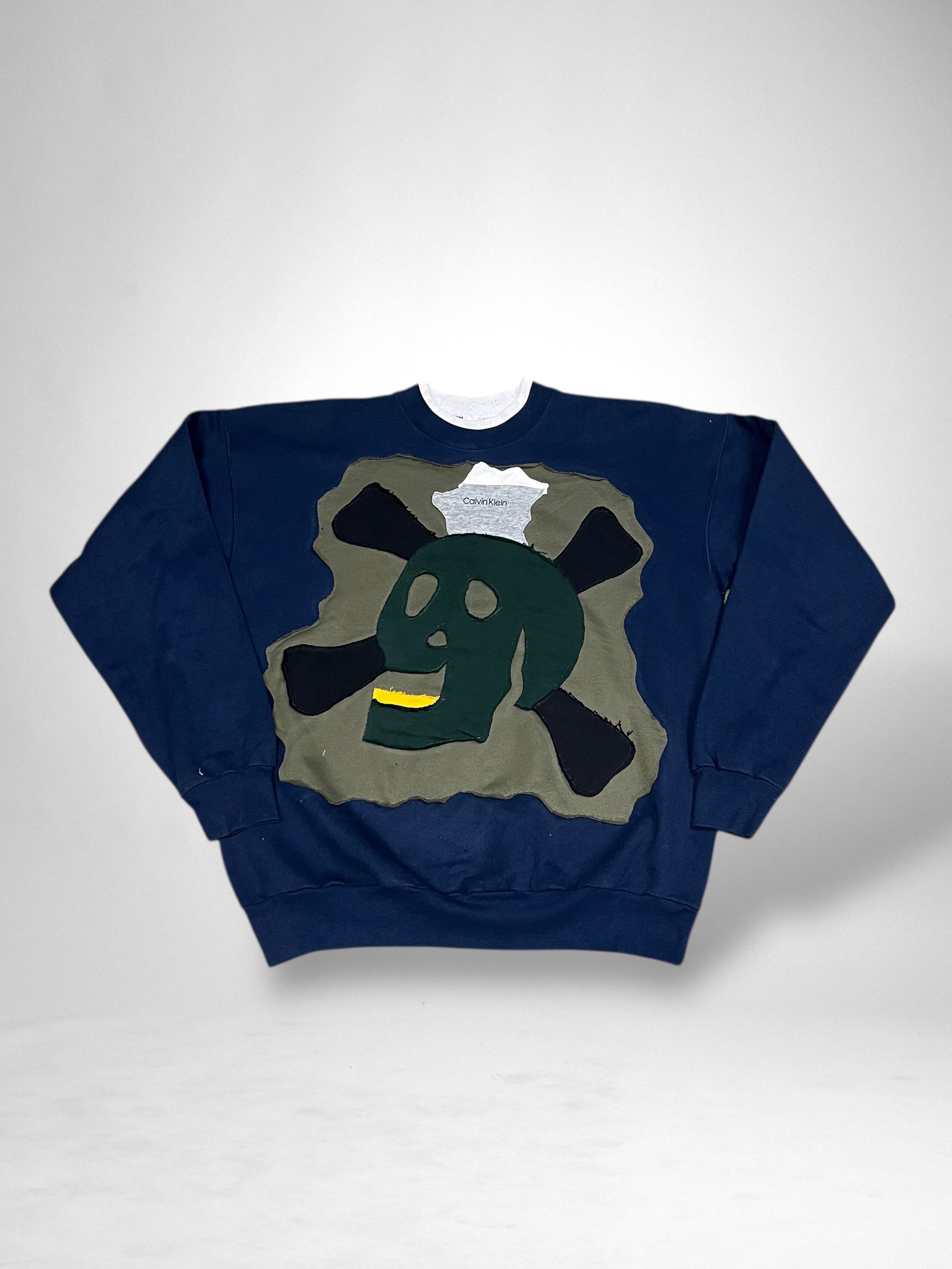 This isn’t your average Calvin Klein. Reworked by hand, this one-of-a-kind jumper features an edgy skull and crossbones graphic boldly stitched across the front — giving classic designer minimalism a rebellious upgrade.