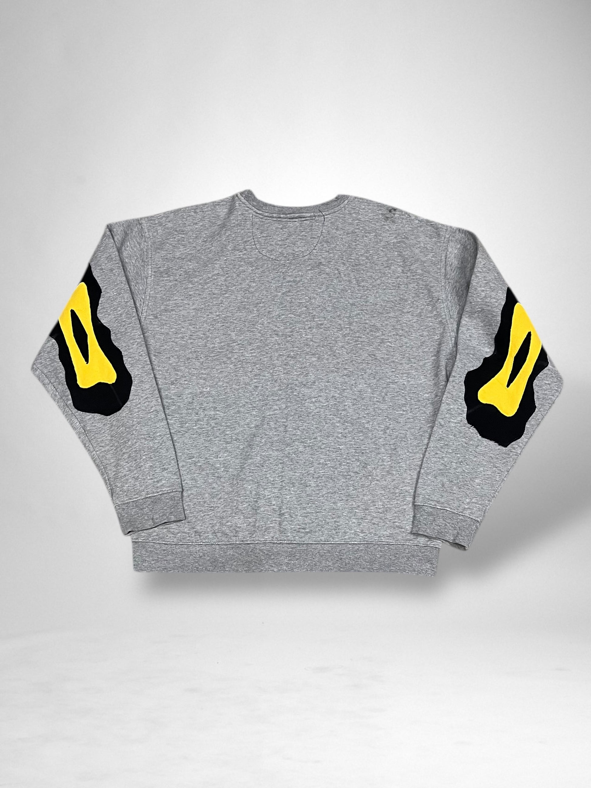 This isn’t your standard Nike. Reworked by hand, this one-of-a-kind jumper features a bold skull and crossbones graphic stitched across the front — clashing classic sportswear with a rebellious twist.